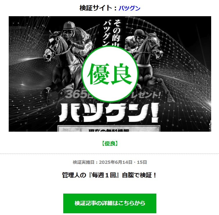 そんな悪評の【KEIBAサンシャイン】は置いといて、前回の検証でもご紹介した【バツグン】は皆様ご登録されましたか?