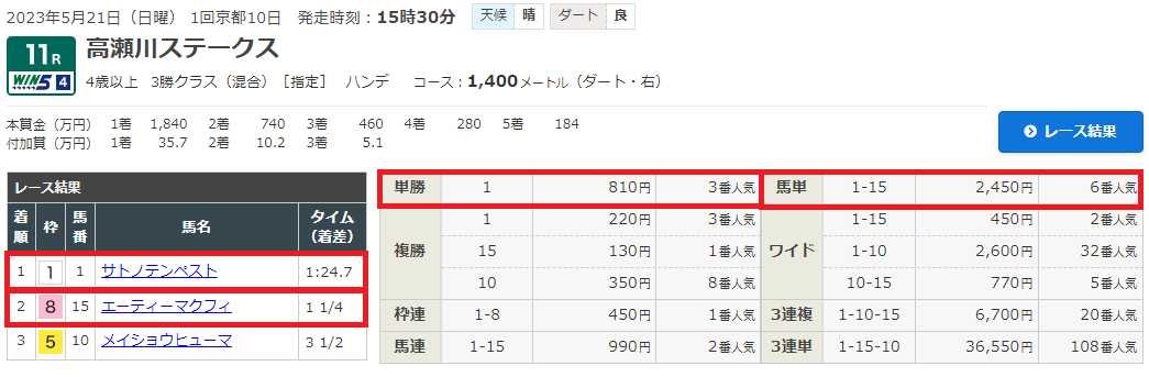 5月21日・京都11レース 高瀬川ステークス 4歳以上3勝クラス ダート1400m