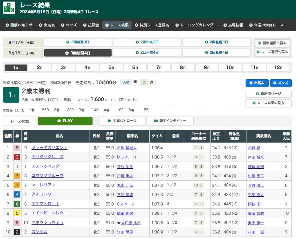 8月17日・新潟12レース 3歳以上1勝クラス 芝1800m