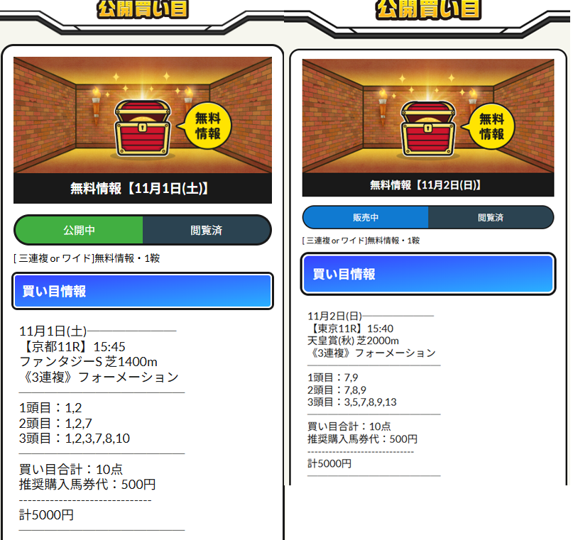 素人なので画像編集はご勘弁を…(笑) 久々に気持ちのいい土日の競馬結果となりましたわ、その理由はリホラボっちゅう予想参考にしたら土日無料予想で連勝飾れましたわ。 個人的には天皇賞よりファンタジー的中の方がすげー思っとります。 2日連続的中で5万9450円、当分の間は遊んで暮らせそうです